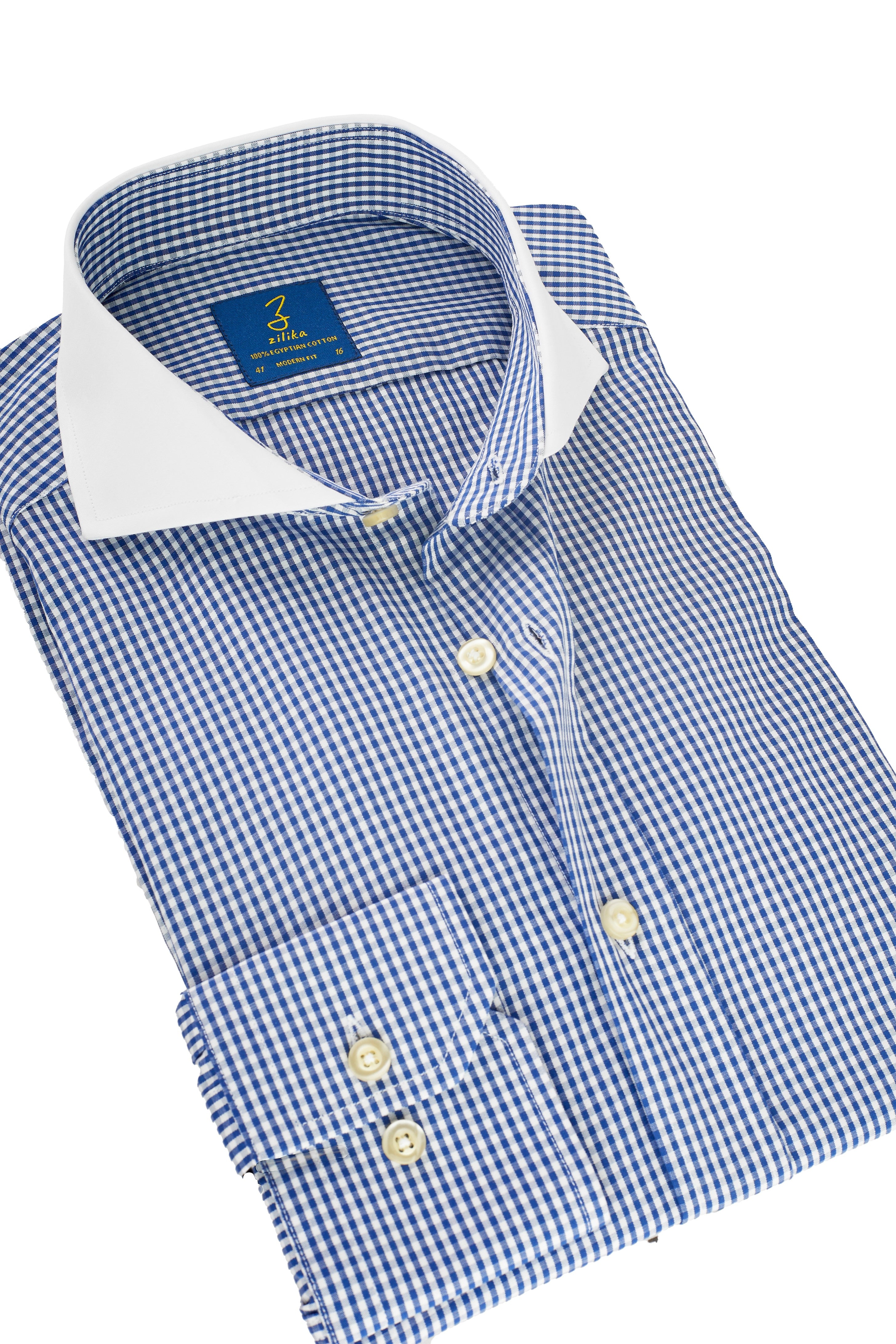 Heren Business Overhemd, Witte Kraag - 100% Egyptisch Katoen - Donkerblauw geruit