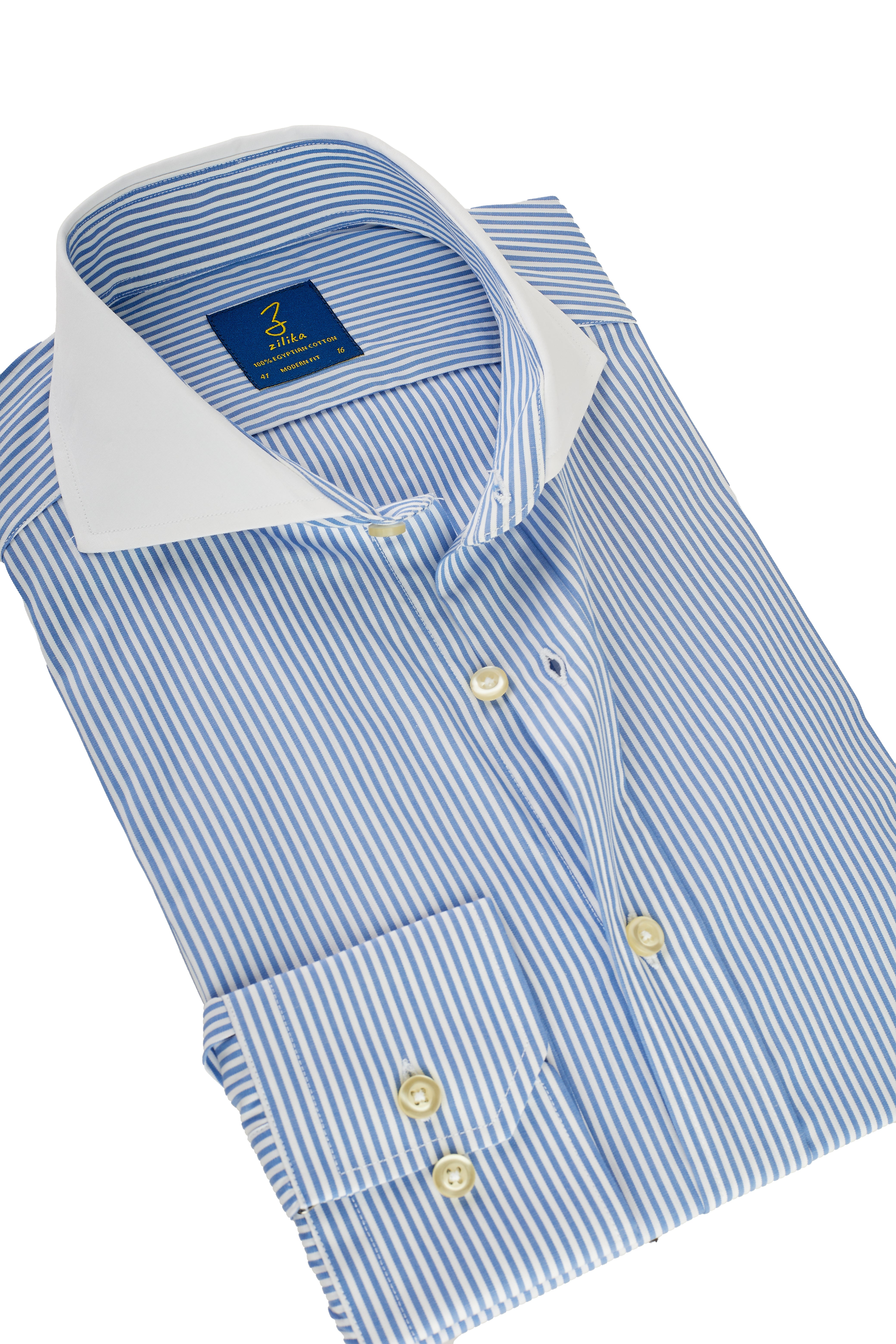 Heren Business Overhemd, Witte Kraag - 100% Egyptisch Katoen - Gestreept Lichtblauw